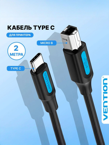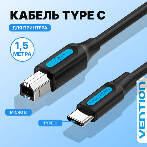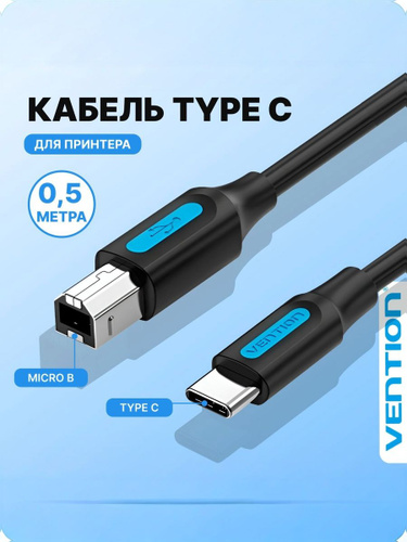 Кабель для принтера, сканера, МФУ USB 2.0 Тип C и USB тип B, Vention длина 0,5 метра,провод тайп си для сканера, цифрового пианино, арт. CQUBD