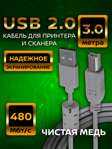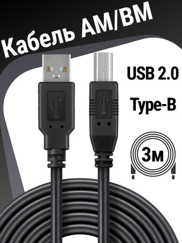 Кабель для компьютерной периферии USB 2.0 Type-A/USB 2.0 Type-B, 3 м, черный