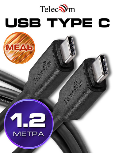 TYPE C кабель 10ГБит/с 60W зарядка медь передача данных TELECOM высокоскоростной (TUS719-1.2M)