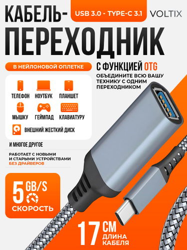 Кабель USB OTG Type C в нейлоновой оплетке Адаптер USB переходник с юсб на тайп си