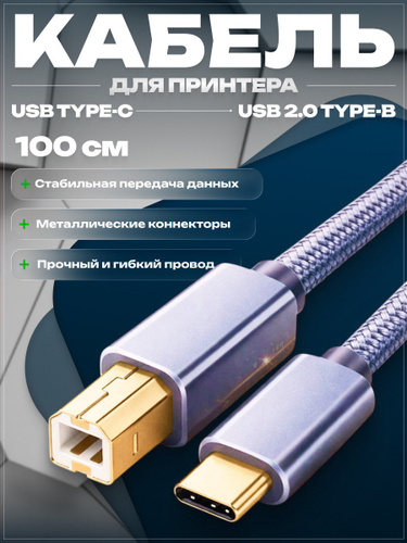 Кабель для принтера, сканера, МФУ USB 2.0 Тип C и USB тип B, провод тайп си для сканера, цифрового пианино длина 1 метр
