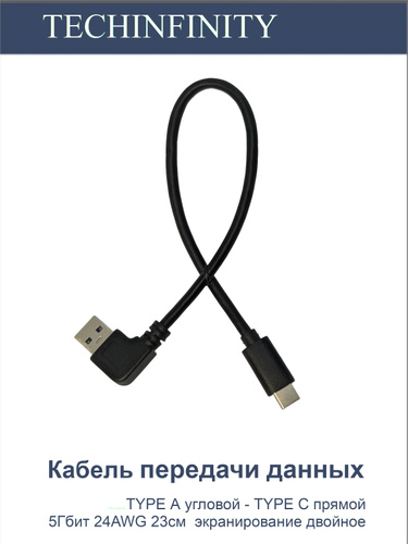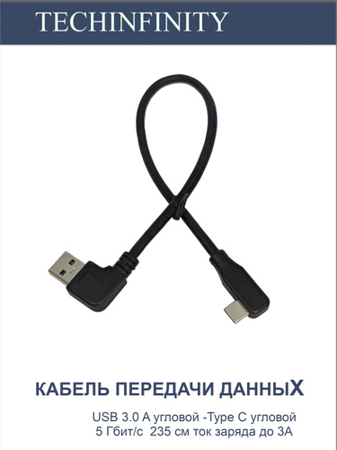 Кабель передачи данных USB 3.0 A (угловой) Type-C (прямой) 230 мм, 5 Гбит/с TECHINFINITY