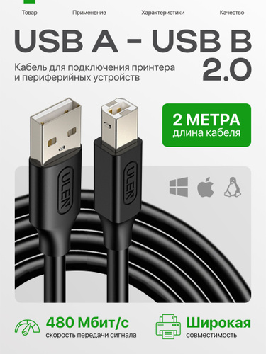 Кабель для принтера, сканера, МФУ USB 2.0 Type c и USB тип B, провод тайп си для сканера, цифрового пианино длина 2метра арт. CQUBH