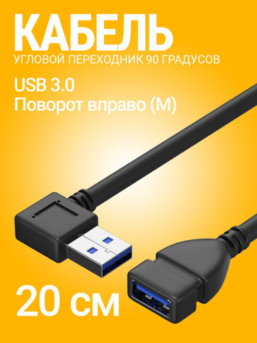 Кабель переходник GSMIN RT-78 (угловой 90 градусов правый) USB 3.0 (F) - USB 3.0 (M) 0.2 м (Черный)