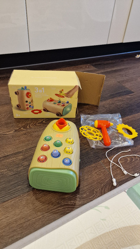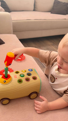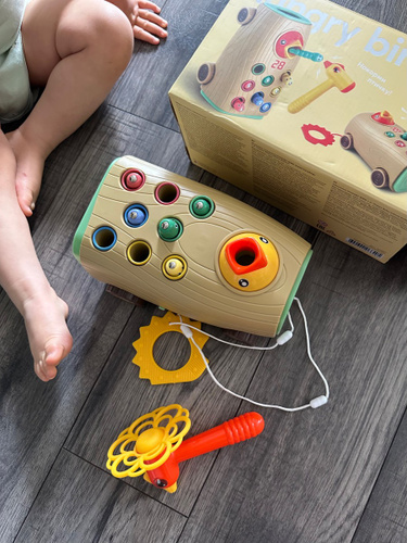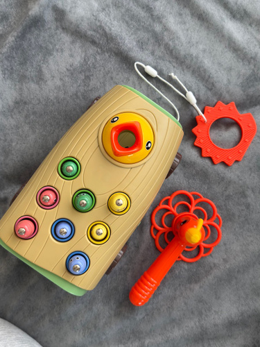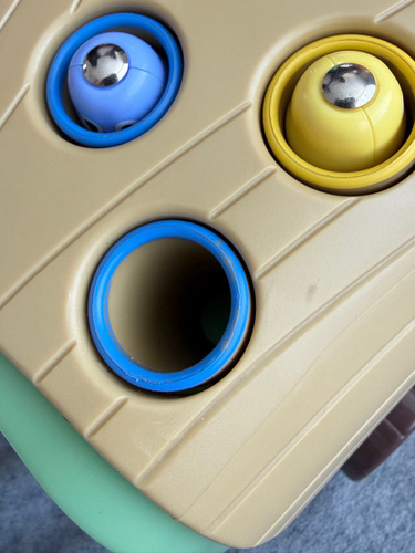 • Изучение форм и цветов – ребенок подбирает геометрические фигуры к соответствующим цветным отверстиям, развивая логическое мышление и мелкую моторику.