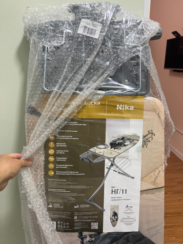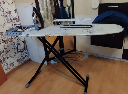 По соотношению цена- качество доска меня полностью устроила. Небольшая, компактная, удобно хранить в шкафу. Легкая- а все более дорогие модели, которые я рассматривала к покупке, весили по 7-11 кг, это очень много. Я пользуюсь доской конкретно для гладки примерно раз в неделю, так как для большей части одежды использую отпариватель. Утюжу несколько джинсов либо шторы. так что не могу сказать, как себя поведет доска при многочасовой использовании, при очень высоких температурах. Раскладываю ее чаще для кошки, она любит лежать на доске или использует ее как трамплин для залегания в шкаф. Кошка крупная, 5 кг. доска пока вполне нормально переносит такие испытания 😁. Что меня гасмешило- это отсутствие чехла. ну то есть я думала, что это чехол,а в реале просто на доску приклеили ткань. Топорно довольно таки. Я положила сверху флис и натянула свой чехол. в идеале для комфортного владения надо бы заморочиться с покупкой ватина для мягкости и ещё одним чехлом плотным сверху. Но в целом покупкой довольна. Ножки фиксируются держателями при раскладывании, можно не бояться, что она в процессе эксплуатации сложится и упадет. ну и про доставку: пришла быстро, упакована хорошо