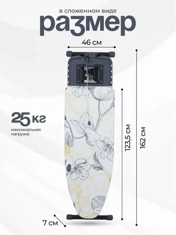 Отличная доска, единственное что мне не хватило, это мягкости на рабочей поверхности. Но я это легко исправила, подложила махровое длинное и узкое полотенце под чехол. Теперь самое ТО! Спасибо!