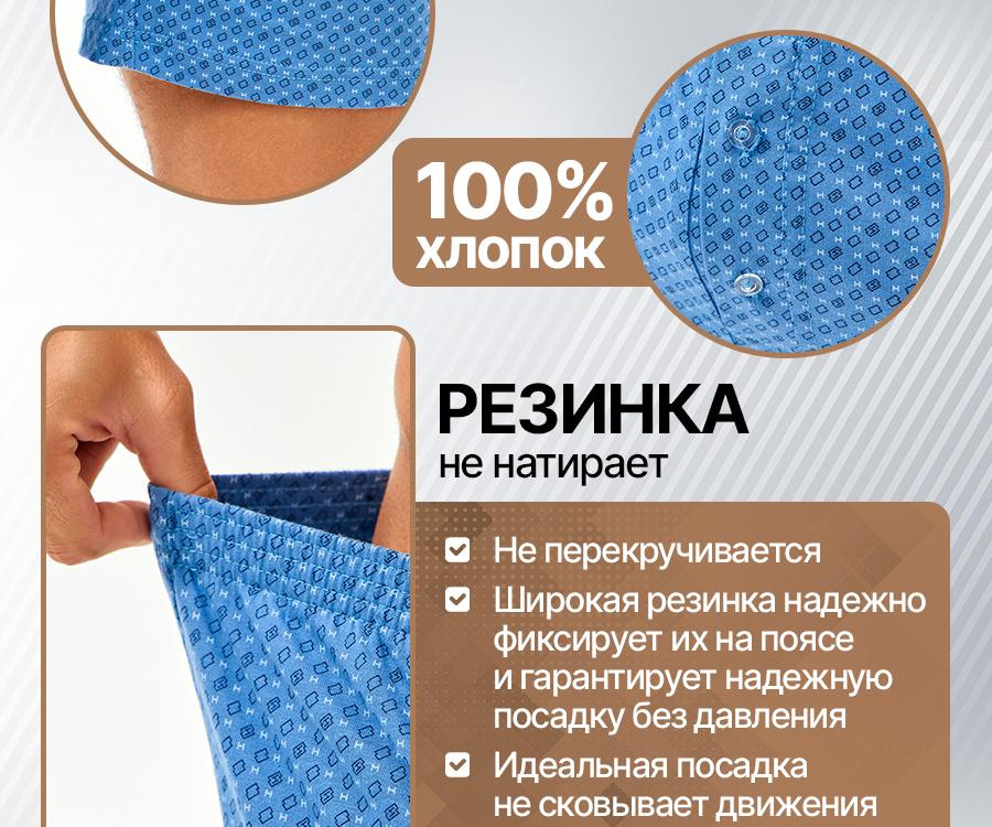Трусы понравились. Немного великоваты по ширине штанин внизу. Ткань мягкая, 100% хлопок, подсели после стирки. Резинка не давит.сшиты хорошо, швы ровные. Каждая единица трусов упакована отдельно в пакет.
