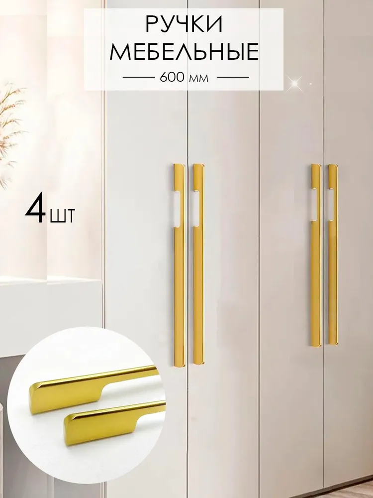 Мебельная ручка длинная золото 60 см - станет отличным дополнением для вашего шкафа, добавив стиль и элегантность в любое помещение. В комплект входят металлические ручки длиной 600 мм (расстояние между креплениями 576 мм).