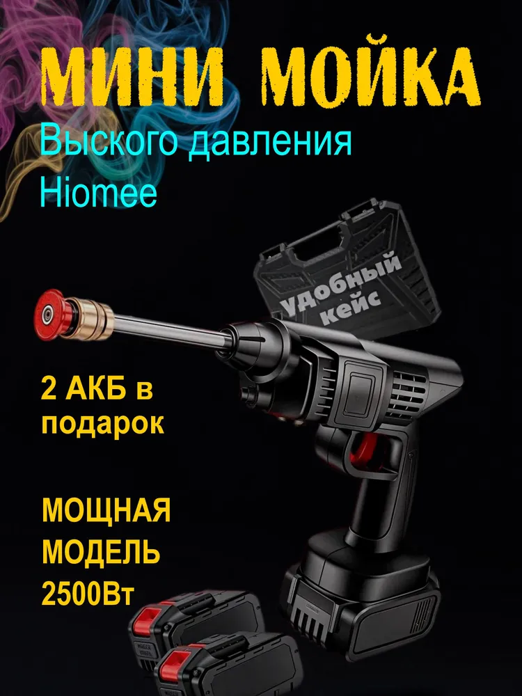 Мойка высокого давления Аккумуляторная HIOMEE в кейсе с двумя аккумуляторами.