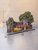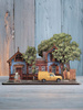 В наборе " Та самая Рязань” 1 домик, 3 дерева, 1 фигурка с персонажами и 1 модель автомобиля, а так же поставка-асфальт. Размеры по подставке - 19,5 на 5,6 см, а самое высокое дерево - 13 см.