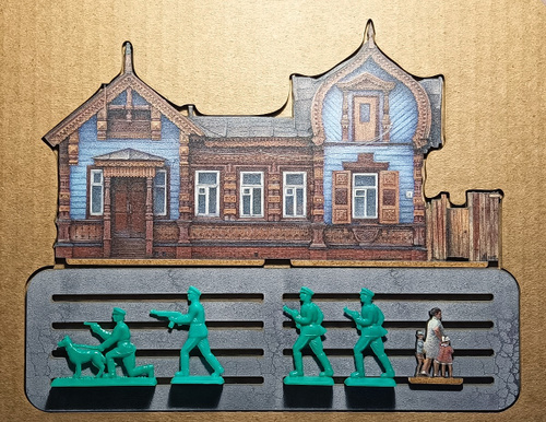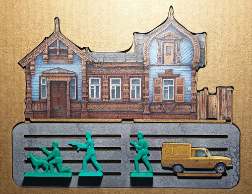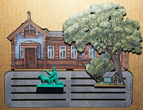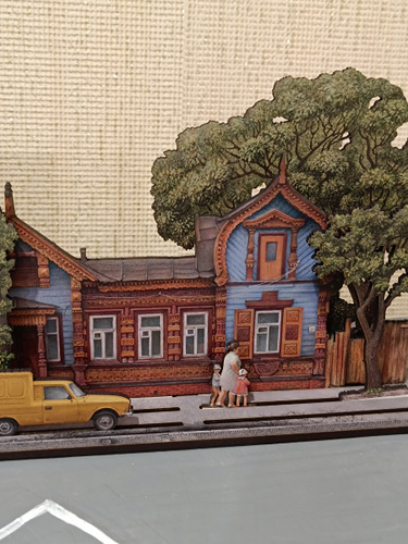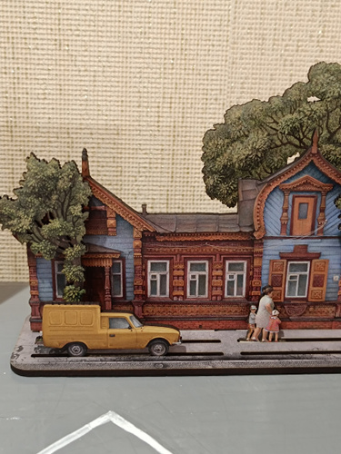 Сувенирная Диорама с Рязанским домиком, разработана автором проекта "Тот самый Петербург" Натальей Наниевой и изображает детали провинциального пейзажа, колонку с питьевой водой, деревянный забор, деревья с затейливыми кронами, спешащих прохожих. И конечно, деревянный дом – одна из жемчужин деревянного зодчества Рязани, построенный еще в XIX веке для генерала И.А. Соболева. А в начале XX в. ставший частью усадьбы принадлежавшей Петру Попову — двоюродному брату изобретателя радио Александру Попову.