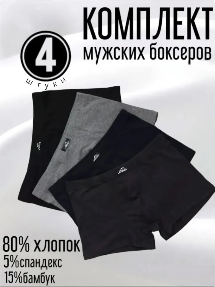 Трусы мужские боксеры – идеальное решение для вашего комфорта и стиля! 4 шт мужских трусов высококачественных трусов боксеров, изготовленных с использованием лучших материалов! Представляем вам комплект базовую модель мужских трусов с модными и стильными цветами – неотъемлемый элемент гардероба для современного мужчины! Эти трусы мужские подчеркнут ваш стиль, обеспечат максимальный комфорт и уверенность в любой ситуации. Дизайн идеально подходит для повседневного ношения, активного отдыха, офиса и спорта, а также прекрасно сочетается с любым выбранным стилем одежды. Этот комплект трусов юоксеров станет отличным подарком для вашего друга, брата, отца или коллеги. Мы изготавливаем наши трусы мужские модели на той же фабрике, что и мировые бренды, и обеспечиваем высочайшее качество каждой детали. Трусы изготовлены из мягкого и дышащего хлопка, обеспечивающего комфорт и приятные ощущения кожи. Новейшая технология обработки препятствует появлению бактерий и неприятного запаха, сохраняя свежесть и чистоту кожи. Трусы боксеры сшиты по бесшовной технологии на передовом оборудовании, что обеспечивает прочность и долговечность изделия. Инновационный материал сохраняет цвет и форму даже после многократных стирок. Благодаря уникальному качеству, эти трусы не скатываются и не растягиваются, обеспечивая идеальную посадку на теле. Удобный поясок и анатомически правильный крой делают их идеально подходящими для любого типа фигуры. Подойдет для подарка на 23 февраля, отцу, мужу или брату.