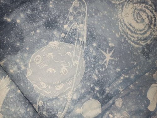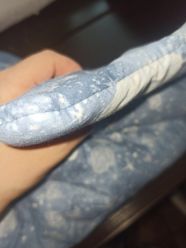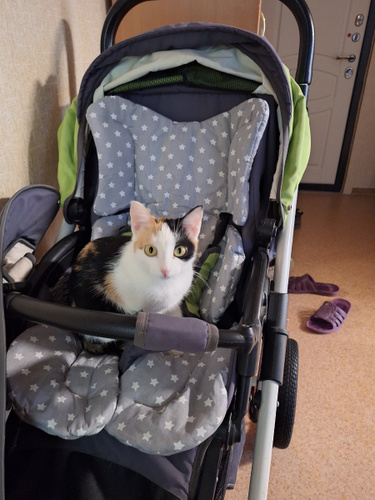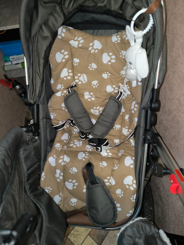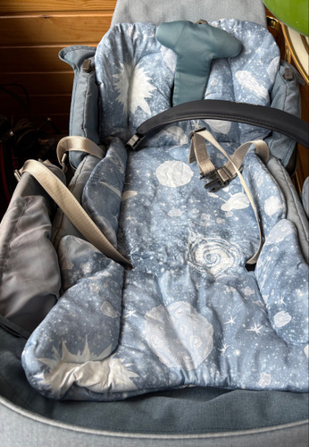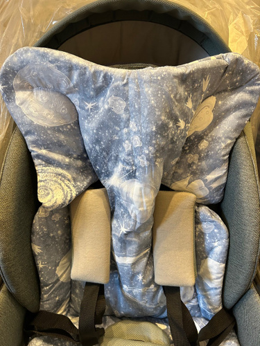 Яркий синий принт добавляет яркости интерьеру коляски, сохраняя эстетическую гармонию. Без застёжки конструкция позволяет быстро установить изделие без лишних усилий.