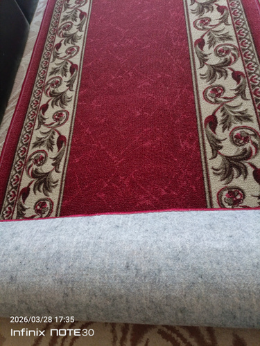 Для лучшей фиксации рекомендуем использовать ковровые стикеры. Края изделия обрабатываются на оверлоке заводской нитью в тон.
