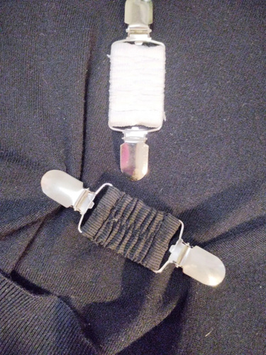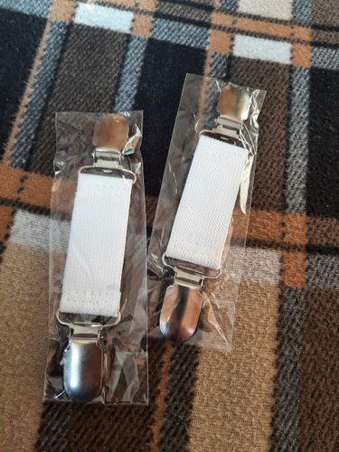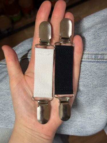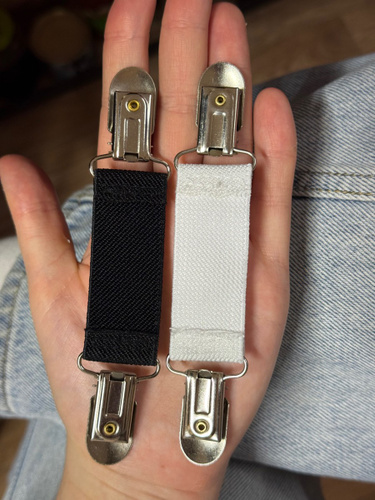 Эластичные зажимы изготовлены из высококачественного металла и тканого полиэстера с резинкой. Данный фиксатор представлен в белом цвете универсального размера (подходит для большинства рубашек и поясов).