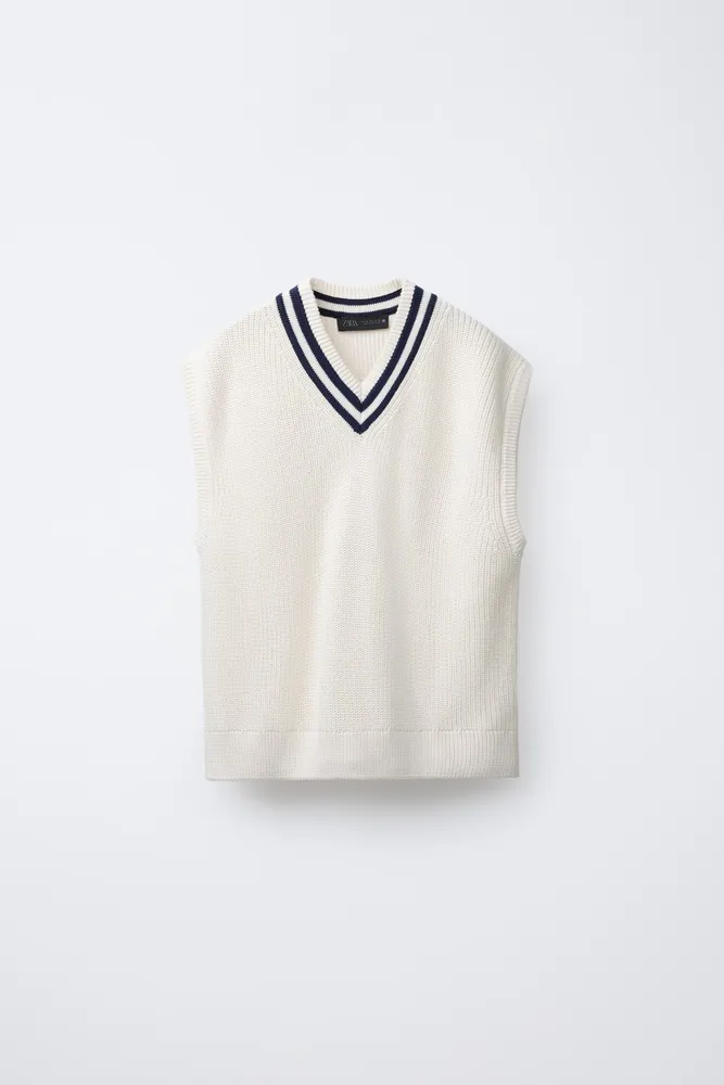 Контрастный трикотажный жилет варсити Zara. Артикул 6216/753/066